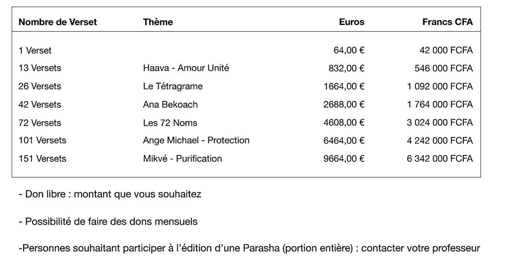 Les dons se font en fonction d’un nombre de verset (64€ par verset - 42 000Fcfa )